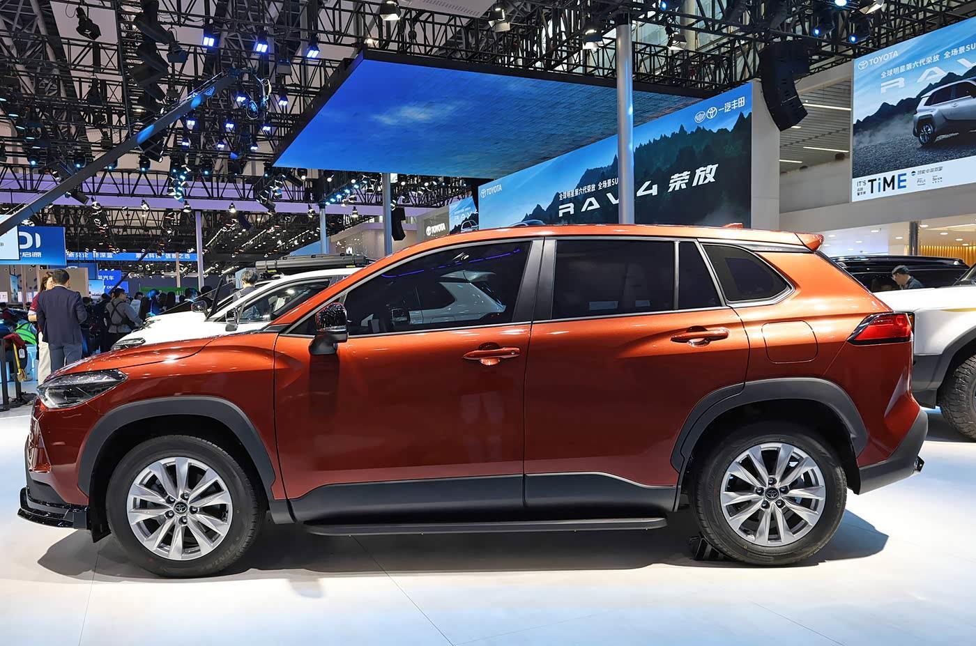 再来看车身侧面部分,车身侧面以 “舒展灵动” 为核心设计语言,4460mm×1825mm×1625mm 的尺寸与 2640mm 轴距延续经典比例。双腰线设计是视觉亮点:上腰线从前翼子板笔直延伸至尾灯,下腰线从前门底部向后上扬,配合内凹式车门型面,营造出向前俯冲的动感姿态。黑色轮眉与侧裙采用磨砂材质包裹,不仅呼应跨界定位,更能抵御日常石子飞溅的损伤;车顶行李架为全系标配,可承载 50kg 重量,搭配隐藏式车顶饰条营造的悬浮效果,兼顾实用与美观。17 英寸多辐轮毂采用双色设计,适配 225/60 R17 规格轮胎,兼顾公路静谧性与非铺装路面的通过性。无论是城市通勤还是周末自驾,这样的侧面造型都能满足家庭用户的多元审美。