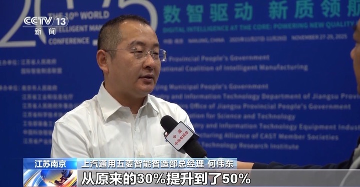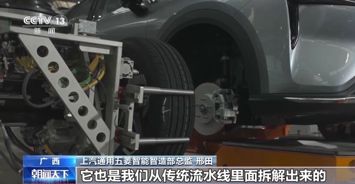 上汽通用五菱智能智造部总经理 何伟东:我们生产的自动化率从原来的30%提升到了50%,在产品的生产柔性能力上面,我们从5个车型提升到了13个车型。